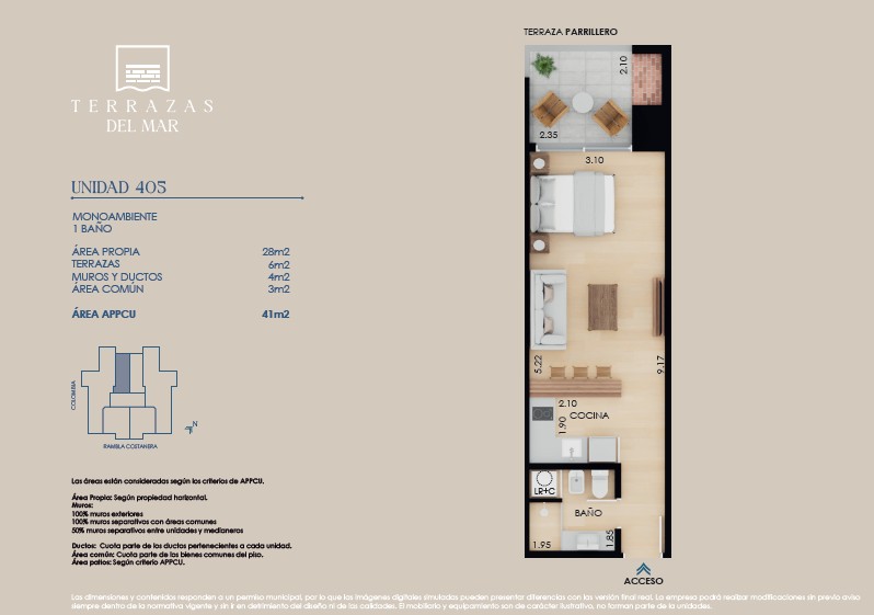 Venta de monoambiente en Terrazas del Mar, ubicado en la Rambla Costanera y Colombes, perfecta armonía entre el mar y la naturaleza, sobre la rambla a minutos de la ciudad.