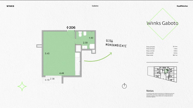 Monoambiente funcional en Winks Gaboto, ubicado en Palermo, Gaboto entre Canelones y Maldonado. El soho de la ciudad se consolida como el barrio de moda. A pasos de la rambla, en plena zona universitaria con excelente conectividad y servicios.