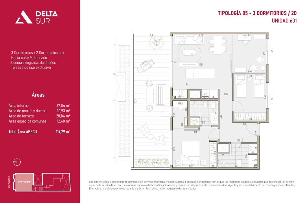 Venta de Penthouse de 3 dormitorios en Delta Sur, ubicado en Maldonado y Convención - Barrio Sur - A pasos de Ciudad Vieja y de la Rambla, rodeado de gastronomía, cultura e historia.