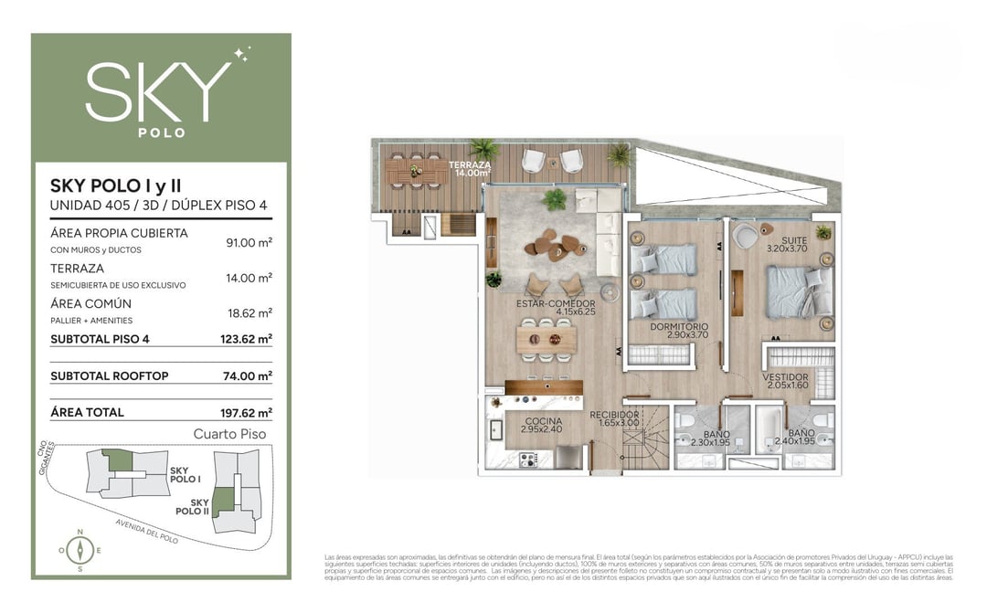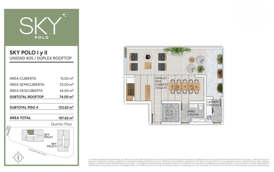 Penthouse en venta de dos dormitorios en SKY POLO ubicado frente a Carrasco Polo Club y al barrio privado Los Olivos, en la proa entre Av. del Polo y Cno. Gigantes.