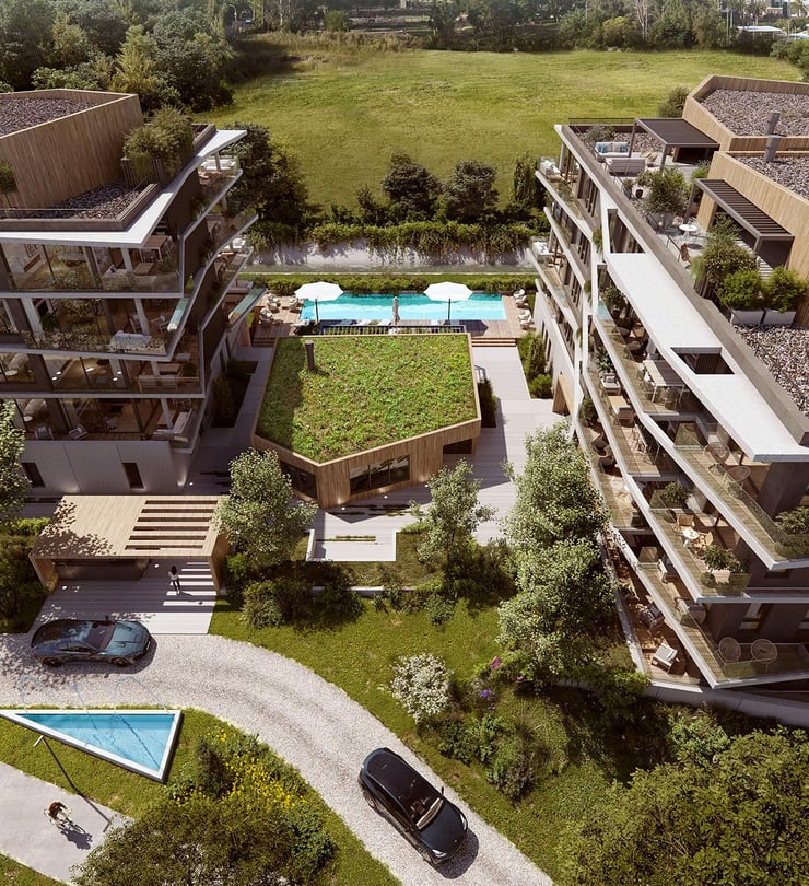 El proyecto consta de dos torres de 4 niveles, con apartamentos de 2 y 3 dormitorios y amenities de primer nivel: piscina con solárium, un SUM con parrillero y espacio in-out, área de wellness, cowork, gimnasio completamente equipado, sala de juegos y seguridad.