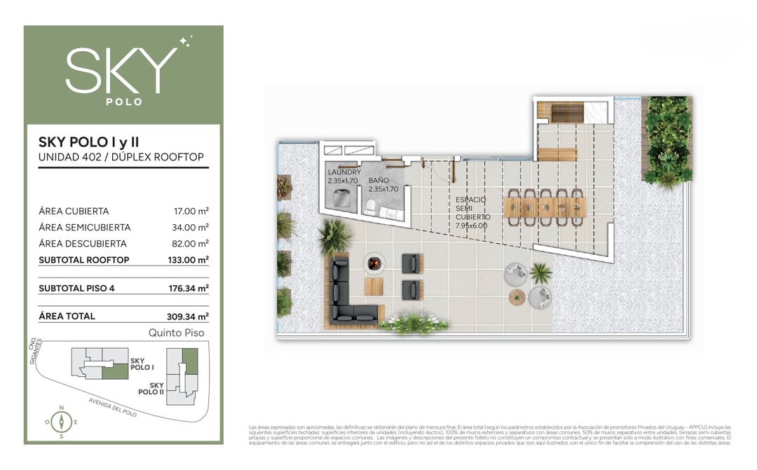 Penthouse en venta de tres dormitorios en SKY POLO ubicado frente a Carrasco Polo Club y al barrio privado Los Olivos, en la proa entre Av. del Polo y Cno. Gigantes.