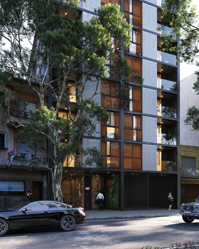 Arbet Soho, ubicado en Palermo Soho, Canelones entre Yaro y Gaboto a pasos de la rambla, de las universidades, del centro y con excelente locomoción. Con apartamentos de 1 y 3 dormitorios en venta.