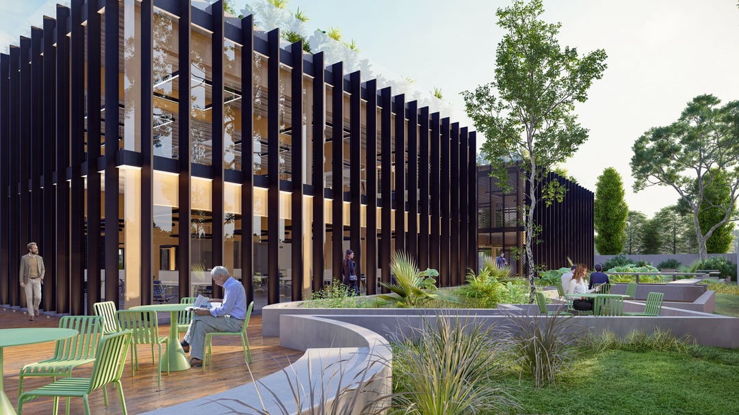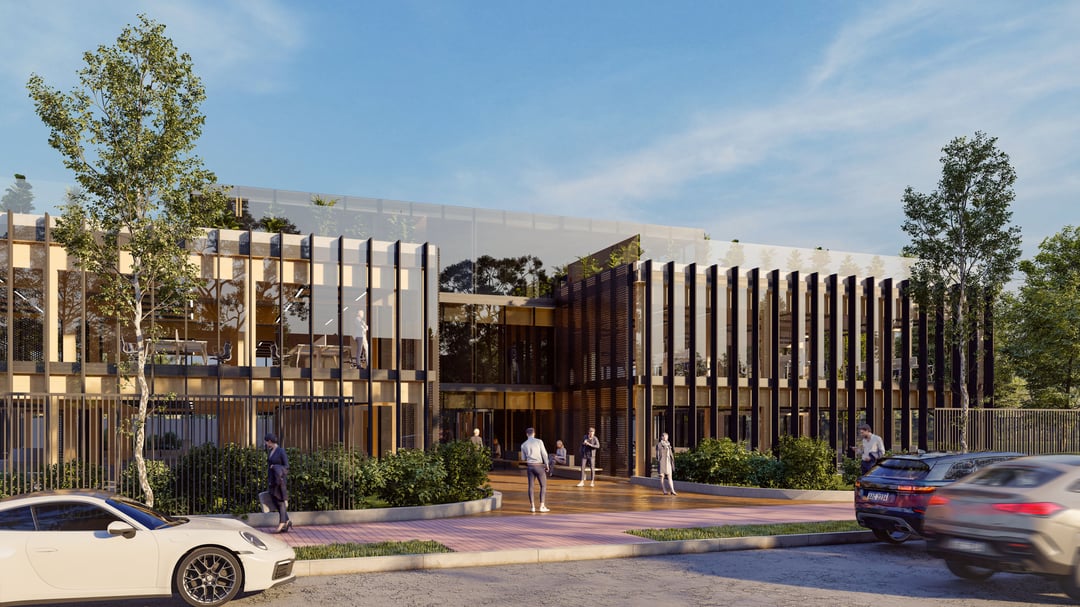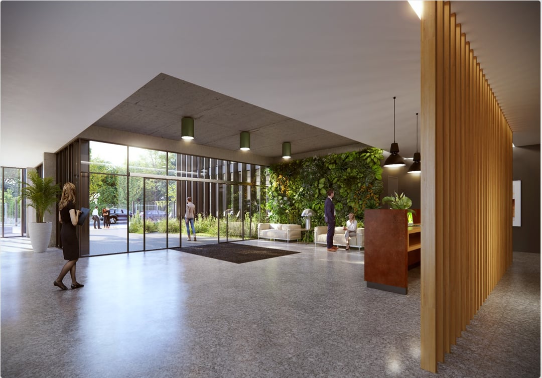 Edificio de oficinas de tres plantas y un subsuelo, el proyecto propine a través de sus múltiples espacios abiertos, grandes terrazas y permanente diálogo con la naturaleza y su entorno, un nuevo concepto de edificio oficina. Cada espacio contará con amplios jardines.