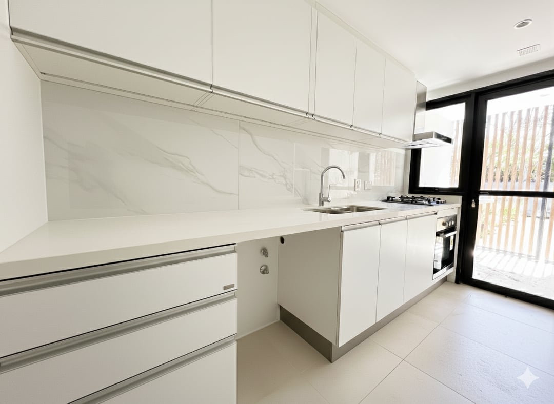 Además de las amenities de nivel: piscina exterior con deck solárium, barbacoa de uso común, sistema de seguridad integral, previsión para autos eléctricos, bicicleteros y garajes cerrados en subsuelo.