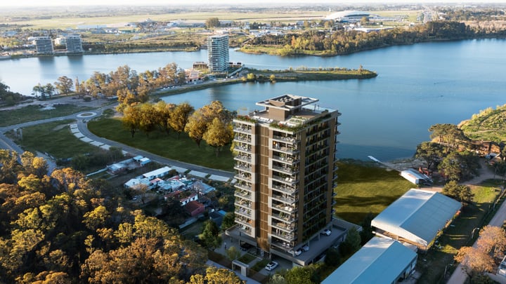 La torre se encuentra en una ubicación privilegiada, justo entre el Parque Roosevelt y el Lago Calcagno, en un entorno natural único.