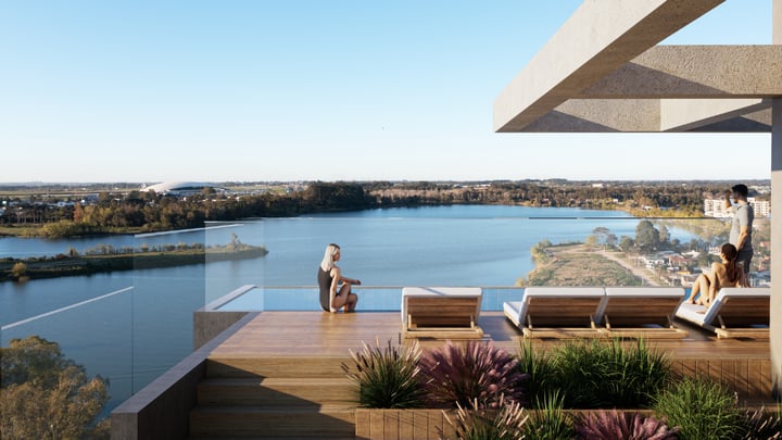 Su atemporal arquitectura, sensible al lugar, se destaca por sus planos volados de hormigón visto y grandes ventanales de piso a techo que captan por completo el paisaje y hacen que el espacio fluya al exterior, invitando a disfrutar de sus amplias terrazas con parrillero. Los espacios interiores, de cómodas dimensiones y armónica proporción, sacan el máximo partido a las vistas y a la orientación, asegurando un total confort.