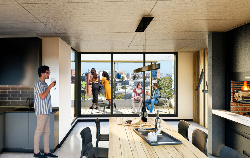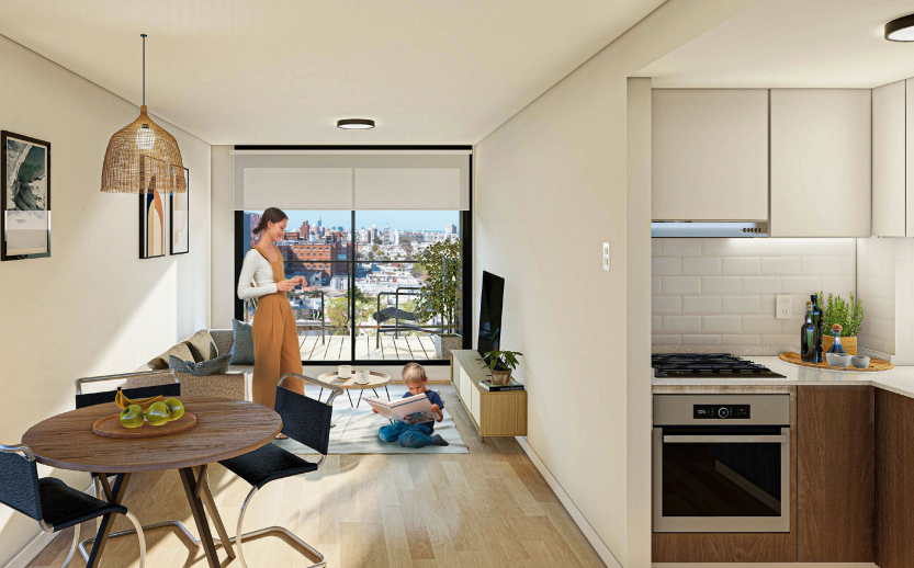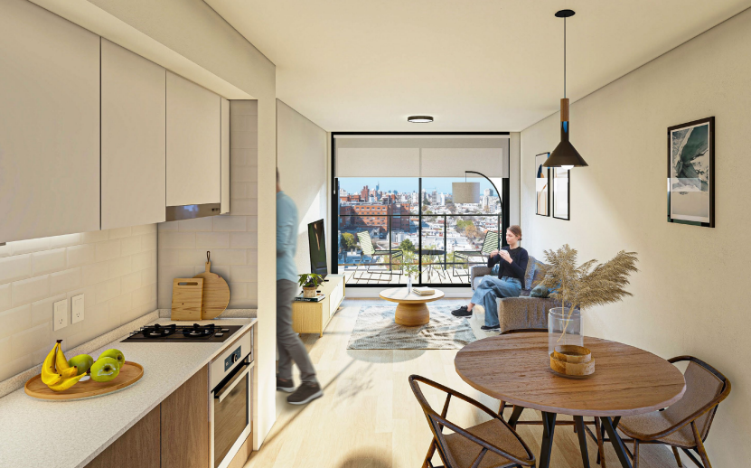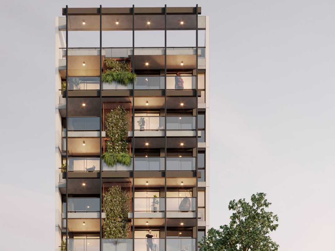 El edificio se compone de 36 apartamentos, distribuidos en 10 pisos, con 18 apartamentos de 1 dormitorio y 18 de 2 dormitorios. Apartamentos confortables, con terminaciones de calidad, amplios ventanales con sistema monoblock y vistas panorámicas.