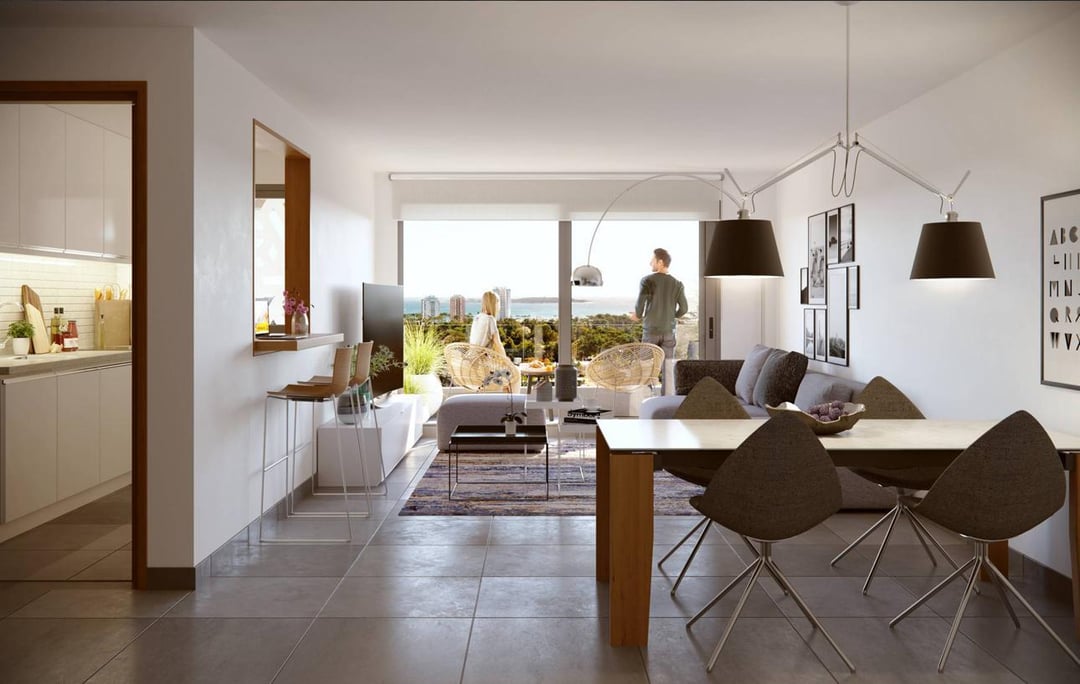 Diamond: ubicado sobre Av. Roosevelt a pasos del Punta Shopping, en un entorno arbolado, ideal para habitar todo el año y disfrutar de las vistas de la bahía de Punta del Este. Con apartamentos a la venta de 1 y 2 dormitorios.