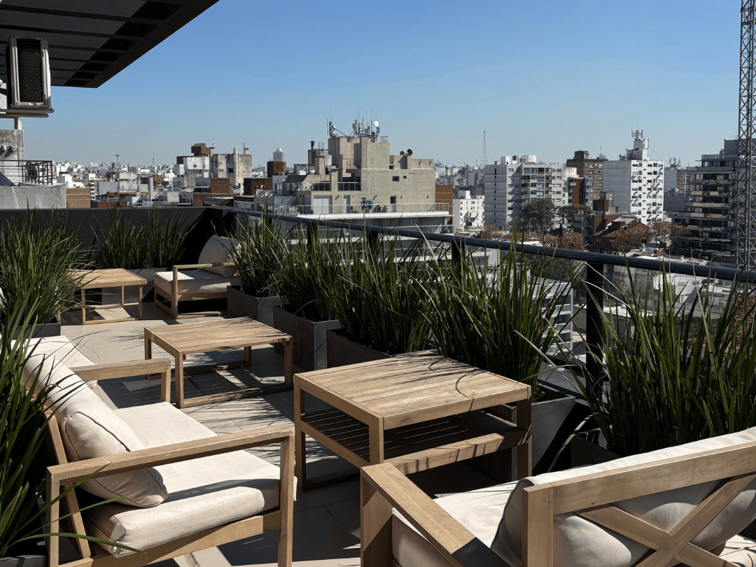 - Áreas sociales: Compartí momentos únicos en las dos barbacoas, el salón gourmet y los fogones exteriores. Además, contás con un espacio de co-work para trabajar, un solárium, un laundry y un bicicletero.