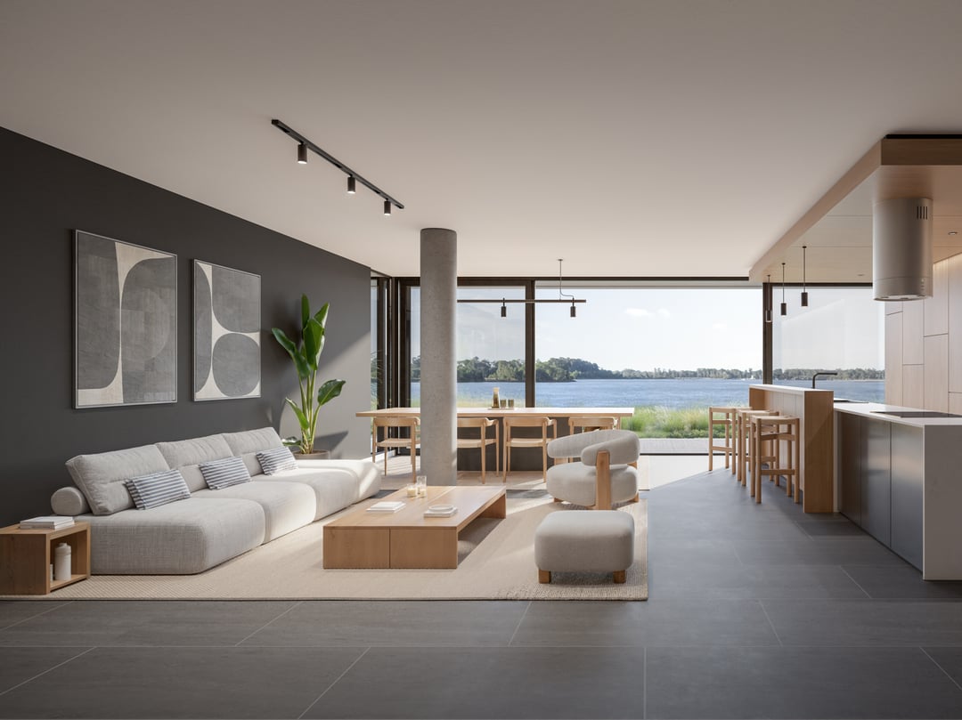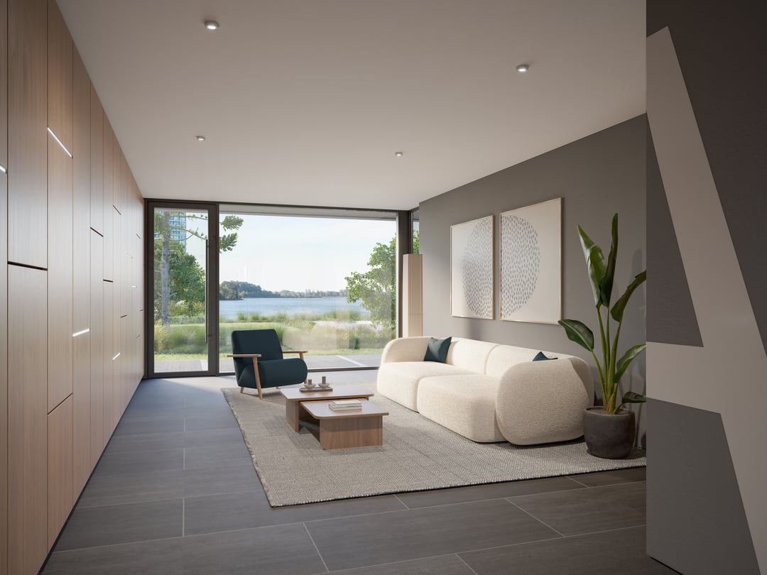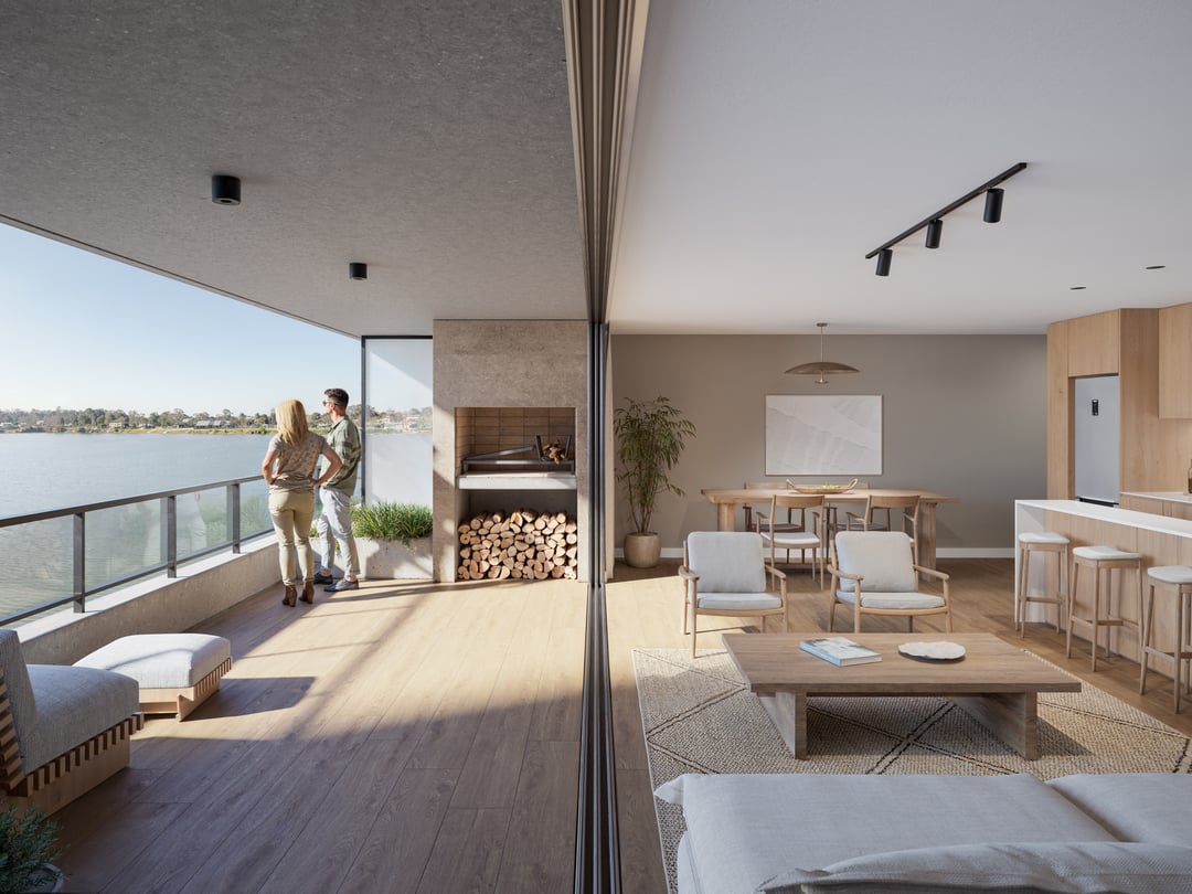 El proyecto se compone de tres torres que albergan 123 apartamentos de 1, 2 y 3 dormitorios. Además, cuenta con 151 cocheras. La vida aquí se centra en el disfrute del lago, donde se pueden practicar actividades acuáticas como kayak y paddleboard.