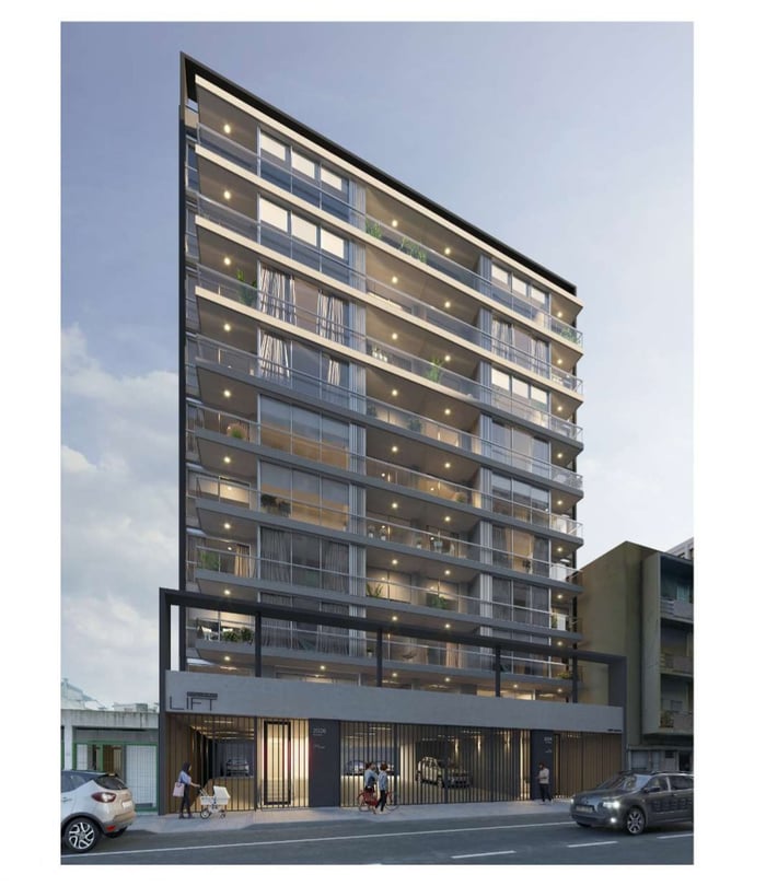 El proyecto contará de 10 pisos con 3 apartamentos por piso, todos de 1 dormitorio. Además contará con dos entradas independientes.
