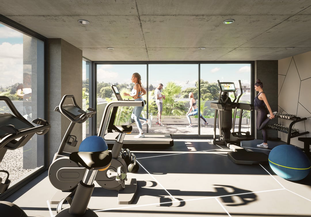 En el 5° piso: Cowork con terraza, barbacoa con parrillero y terraza, gimnasio equipado, y laundry con tender.