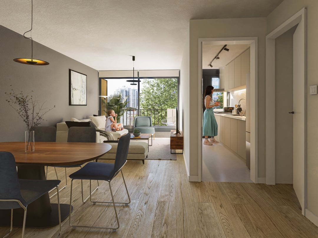 En las unidades: Calefacción por losa radiante eléctrica individual y previsión para aire acondicionado. Las aberturas exteriores son de aluminio con doble vidrio (DVH). Además, los dormitorios cuentan con placard y cortinas de enrollar.