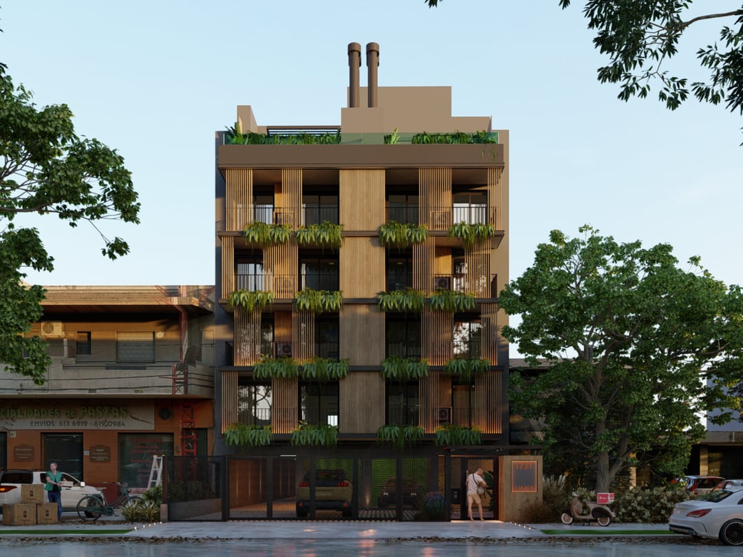 El edificio ha sido diseñado para maximizar la luz natural y ofrecer un estilo de vida único: espacios privados (apartamentos de alta calidad que cuentan con amplias terrazas y parrillero propio en todas las unidades), arquitectura dinámica (ambientes movibles que se integran con el diseño de la fachada, creando espacios fluidos que se adaptan a tus necesidades), terminaciones de nivel (ventanas de aluminio negro con vidrio doble (DVH), persianas motorizadas, mesadas de granito negro y pisos de alta resistencia).