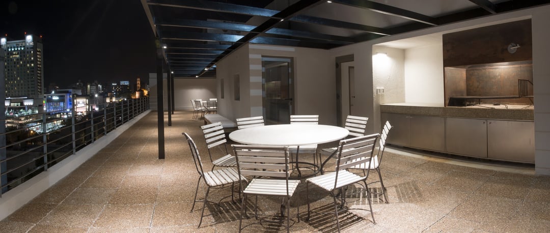 En el último piso se encuentra una gran terraza panorámica, con vista a los cuatro puntos cardinales que permite disfrutar al máximo su ubicación privilegiada. Un salón que ofrece el marco perfecto para desplegar los servicios asociados a las actividades de relax y tiempo libre.