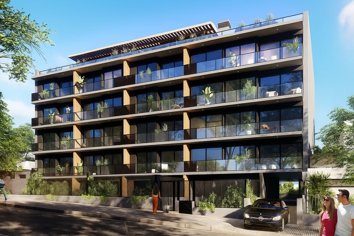 Edificio contemporáneo de excelente calidad constructiva, desarrollado en 5 pisos de apartamentos y con espacios comunes en el ultimo piso.
